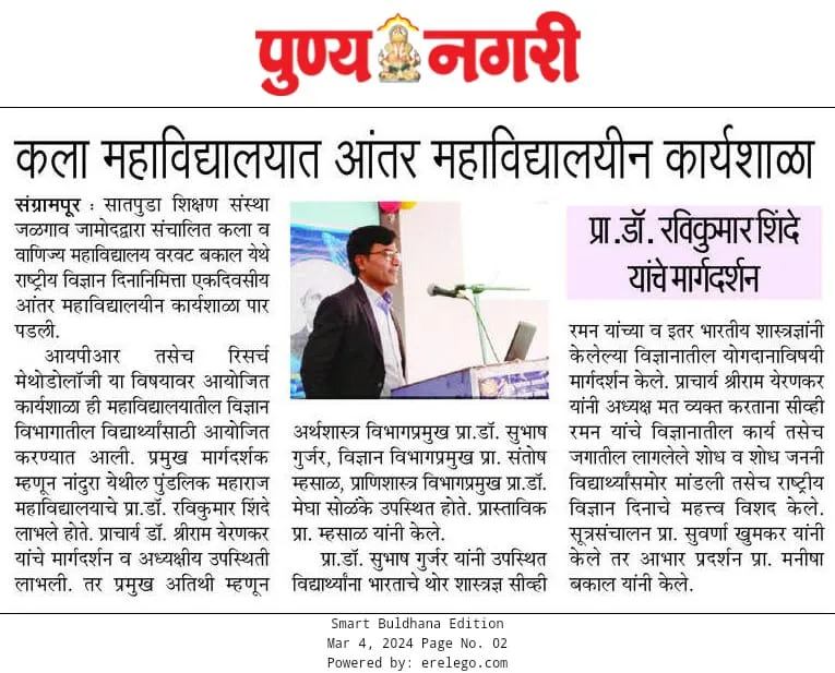 कला महाविद्यालयात आंतर महाविद्यालयीन कार्यशाळा