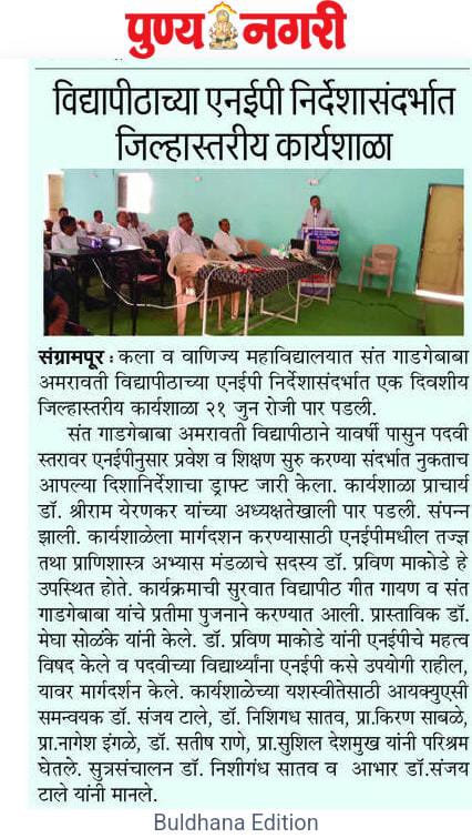 विद्यापीठाच्या एनईपी निर्देशासंदर्भात जिल्हास्तरीय कार्यशाळा