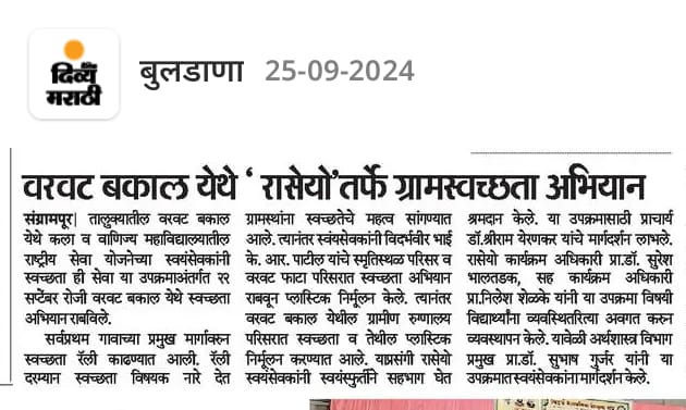 वरवट बकाल येथे ‘ रासेयो’तर्फे ग्रामस्वच्छता अभियान