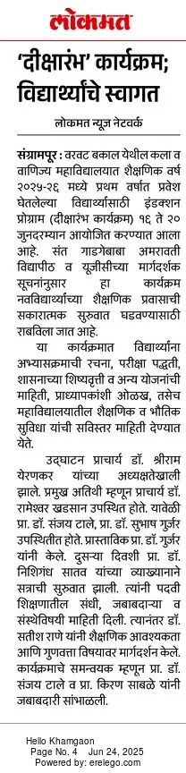 ‘दीक्षारंभ’ कार्यक्रम; विद्यार्थ्यांचे स्वागत