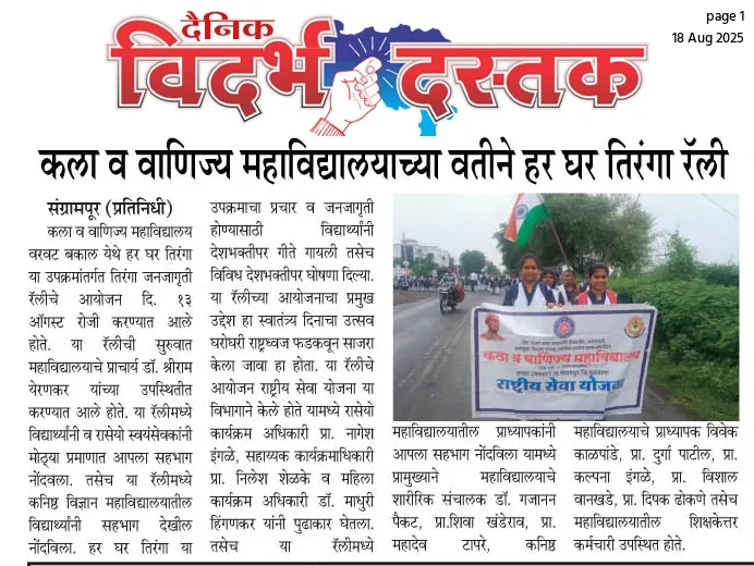 कला व वाणिज्य महाविद्यालयाच्या वतीने हर घर तिरंगा रॅली